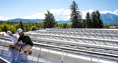 This system was installed by Assistant Professor of Integrated Energy Chris Ellis of Colorado Mountain College and his students. It was completed in September of 2014. This is the first Solaredge system the college has installed and the module level monitoring is very exciting and informative.
