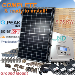 This residential DIY solar system was designed with record breaking Q.PEAK DUO G5 325 solar panels from Q CELLS at a low wholesale price. This complete residential solar system comes with your choice of IronRidge or ProSolar ground mounting system, Q CELLS "Q.PEAK DUO-G5" 325 watt solar panels, SolarEdge inverter, Power Optimizers, and everything but standard hardware.