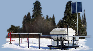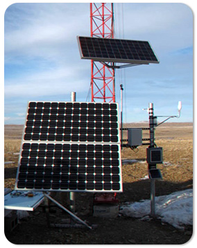 Diseñamos y ofrecemos sistemas MAPPS ™ a cargas eléctricas en áreas al aire libre remotos como este sistema solar resistente a la intemperie utilizado para la iluminación del parque eólico Torre MET.