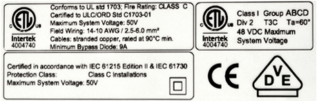 A Class I Div 2 certified system means that the world's most trusted name in testing, Intertek, has independently certified these systems as safe for use in the highest level of hazardous locations where there is the possible presence of flammable gases, vapors, or liquids. This system line is the first solar power system in the world to meet Intertek's most rigorous hazardous location safety standard.