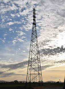 The four 800 Watt MAPPS® solar arrays on the Monopole Systems had to be spread 18 ft apart to prevent shading.