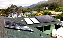 RSES 4.6 KW sloped roof system using Sanyo-Panasonic monocrystalline solar panels in Hawaii.