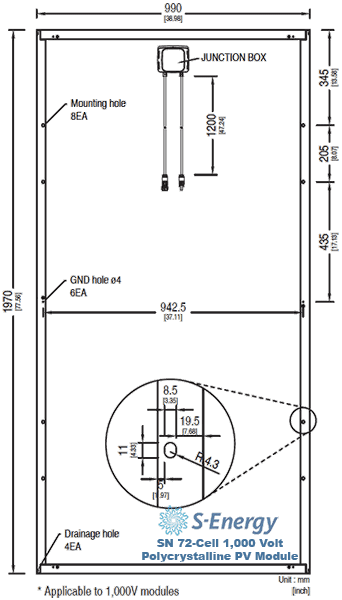 SN310P-10 Polycrystalline Solar Module Dimensions