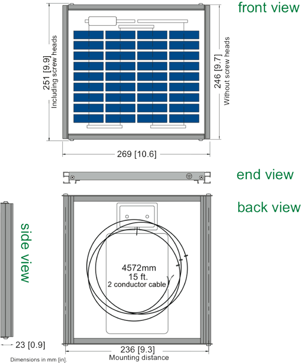 A 4.6 meter PVC-jacketed AWG 18-2 polarized cable is potted into the fully sealed junction box located on the module back. The module's electrical connections are sealed for prevention against corrosion and moisture penetration.
