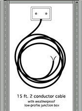A 15' PVC-jacketed AWG 18-2 polarized cable is potted into the fully sealed junction box located on the module back. The module’s electrical connections are sealed for prevention against corrosion and moisture penetration.