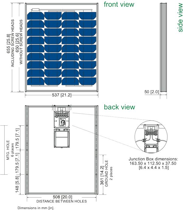 Module Frame includes pre-drilled mounting holes for mounting frame and ground