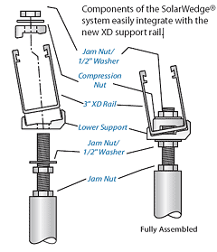 The Solar Wedge solar panel roof mounting system provides an easy to install and economical solution for 5, 10 or 15 degree structural attachment. SolarWedge integrates with Professional Solar's patented "top-down" commercial RoofTrac and FoamJack stanchion products.