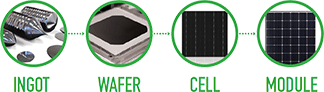 ingot, wafer, cell, pv module