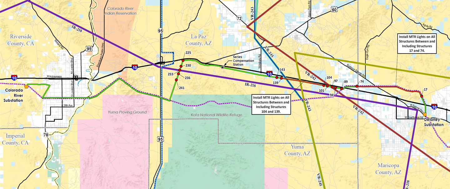 Capitola, CA, - Solar Electric Supply, INC (SES) - a leading solar energy solutions provider, and its partner P&R Technologies have been awarded a $1.2 million contract to deliver 110 MAPPS solar obstruction utility LED lighting systems for the Ten West Link 500kV Transmission Line Project. SES & P&R successfully completed the contract, supplying the critical lighting infrastructure for the 125-mile project spanning Arizona and California.