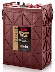 These L-16 batteries were originally designed for electric floor scrubbing machines. They are a heavy duty cousin of the golf cart batteries with much thicker lead plates and nearly twice the capacity. The L-16 is available in a standard L16P and a high-capacity L16H version. The standard version holds more electrolyte and has a slightly longer life.